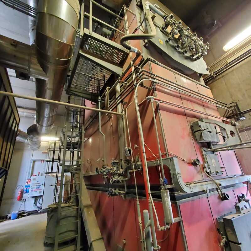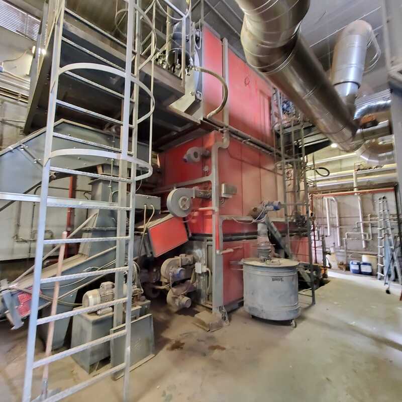 Generatore di vapore Uniconfort Global G240, anno 2015, con potenza di 2.720 kW e pressione massima di 11 bar a 159°C, progettato per la produzione continua di vapore fino a 4 tonnellate all’ora. Dotato di griglia mobile e carico del cippato verde tramite redler, è in grado di gestire materiale con umidità superiore al 50%. Completo di batteria filtrante, garantisce riduzione delle emissioni e funzionamento sicuro ed efficiente.