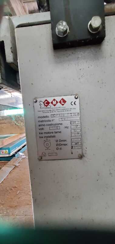 Refilatrice CML SCA 320 RT 350 con 1 lama fissa e 1 lama mobile, progettata per rifilare tavole e componenti in legno con passaggio larghezza fino a 750 mm e taglio massimo di 350 mm. Dotata di motore lame da 37 kW, garantisce precisione, potenza e affidabilità anche per lavorazioni intensive.
