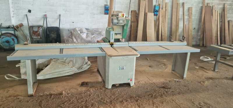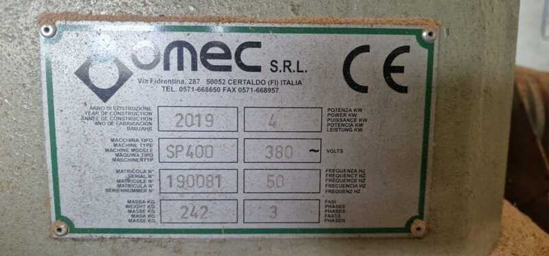Troncatore per tavole a pendolo Omec SP400, anno 2019, progettato per tagli precisi su tavole fino a 400 mm di larghezza e 100 mm di spessore. La macchina garantisce precisione, sicurezza e facilità d’uso, ideale per laboratori di falegnameria e segherie professionali.